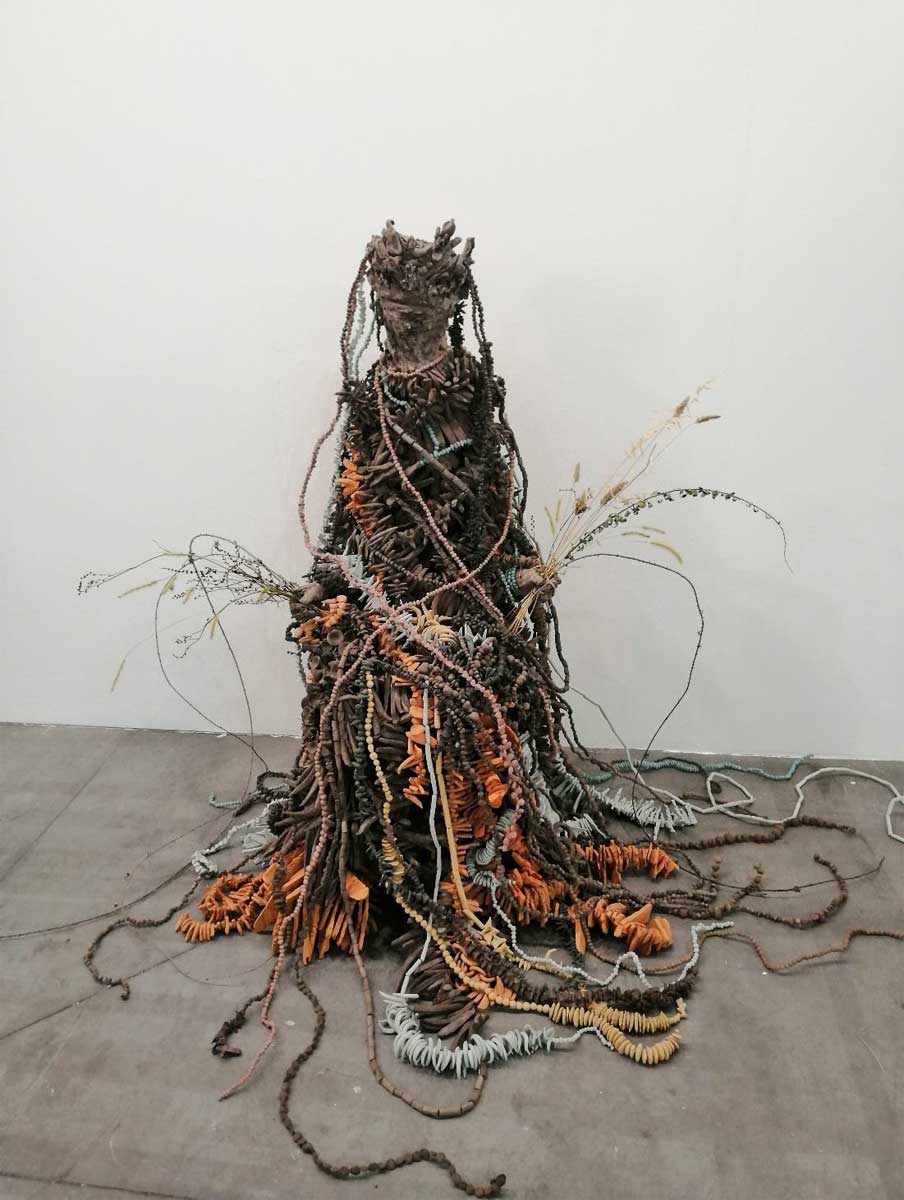 L’opera tessile Mother Earth di Tabita Rezaire celebra la maternità e la fertilità e fa parte del secondo ciclo di una trilogia di divinità ricamate, realizzate in collaborazione con le donne Saramaka (Guyana francese). Mother Earth onora lo spirito della Terra, la sua abbondanza e la sua saggezza, e ci richiama alla responsabilità di prenderci cura dell’ambiente in cui viviamo.
