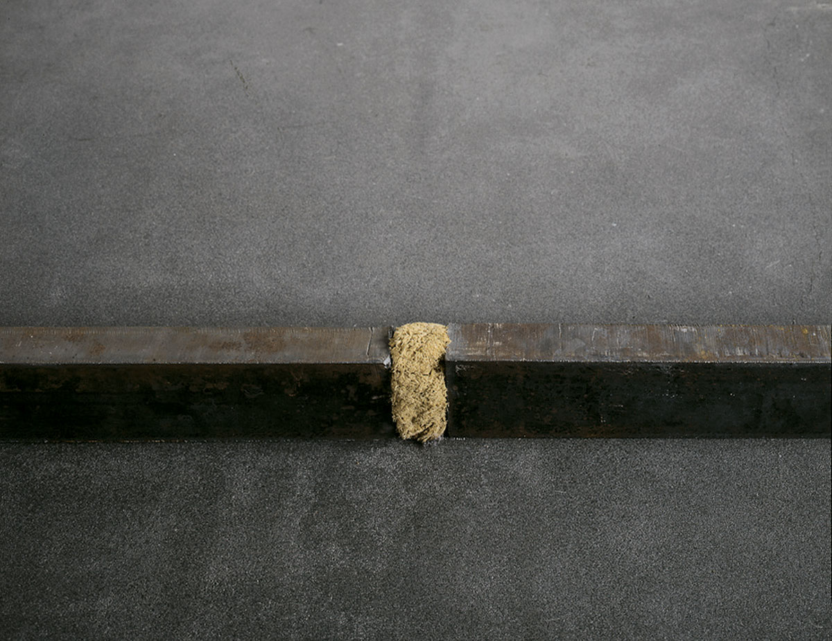 Although his early artistic investigations emerged within the pictorial discipline, Anselmo immediately sought to reject a nostalgic approach to creating a painting, which he saw as a space apart, separate from the artist’s sensibility. As Jean-Christophe Amman relates, Anselmo said: “It is true that the painting has its fascination, but it excludes you, you remain alone with your emotions.” There is a well-known story of how the artist, walking one day at dawn at the summit of Stromboli, had a clear perception of the infinite realm of which, from that point on, all his works would become components. Unlike what occurs outside the closed imaginative plane of the canvas, the fulcra of energy created through his installations include everything within themselves: artist, viewer, cosmic geometries. No element remains isolated in the solitude of its finite reality. Everything is reorganized in relation to the positioning of the work’s elements, and the work responds to the trajectories and lines of energetic tension of earth and sky. […]