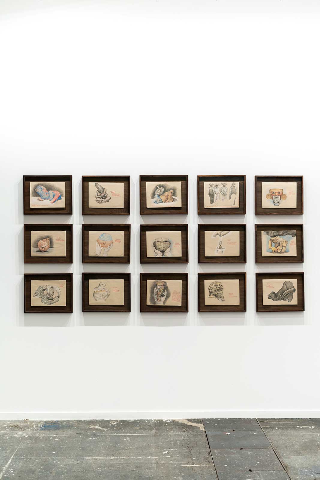 - Abraham González Pacheco, Dibujos de objetos del Yacimiento 34, 2024, colore e grafite su carta, 22 x 30 cm cadauno